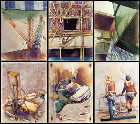 View Taken From A Central Footbridge - Mixed media on paper 38.5x29cm(each) 1998